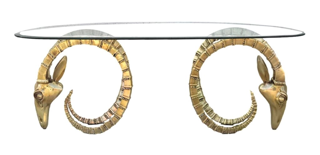 Brass Ibex Rams Head Coffee Table Bases Alain Chervet Style