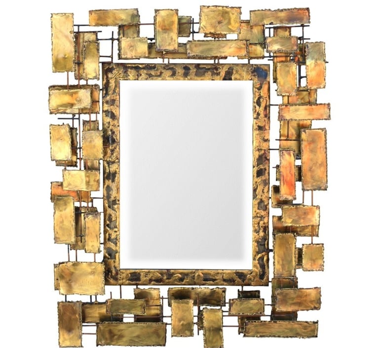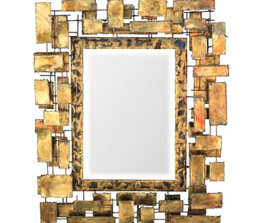 Brutalist Sculptural Mirror Brass Tiered Layered Torch Cut & Welded